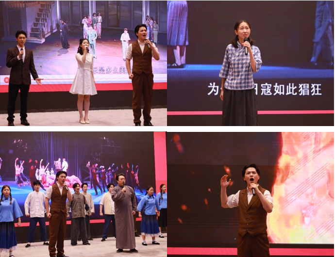 专业演员现场演绎《国之当歌》的经典选段,以音乐深情再现聂耳、田汉“以文艺为武器”的斗争历程。7位凯发K8的青年学生自发登台与专业演员互动,共同演绎经典曲目《卖报歌》和《毕业歌》。当《义勇军进行曲》旋律响起,全场党员同志怀着激动的心情肃立高唱,激昂的旋律与雷鸣掌声交织,将“天下兴亡,匹夫有责”的精神传承具象化。