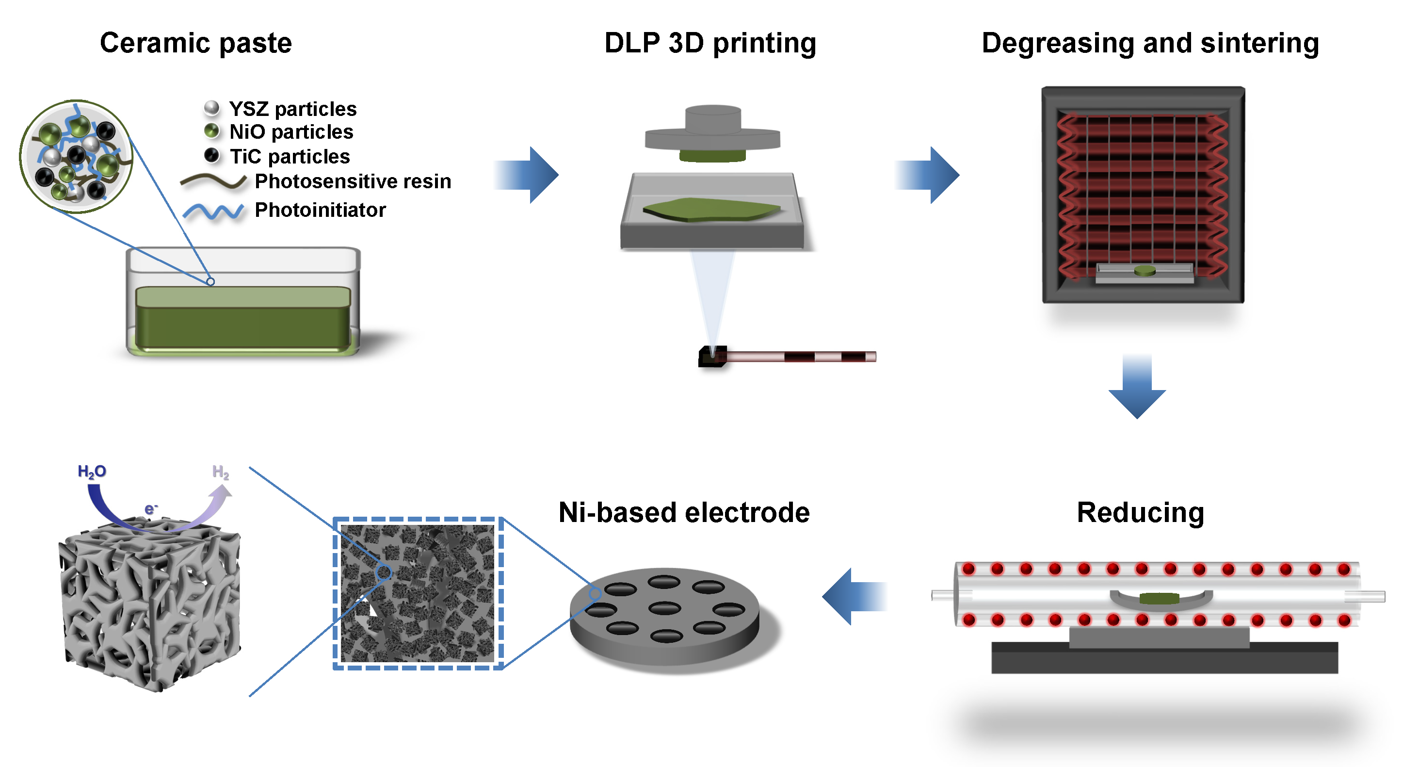 图1. 3D打印制备整体式镍基碱性析氢电极过程