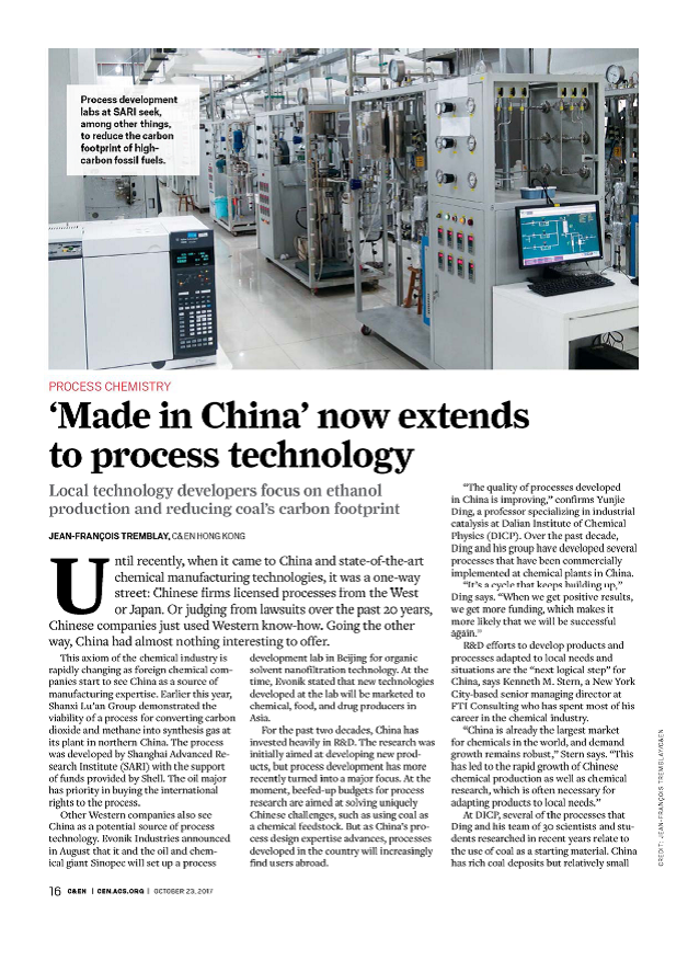 国际著名杂志C&EN报道了高研院低碳转化科学与工程实验室工作
