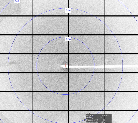一幅膜蛋白晶体(尺寸小于5微米)的衍射图案