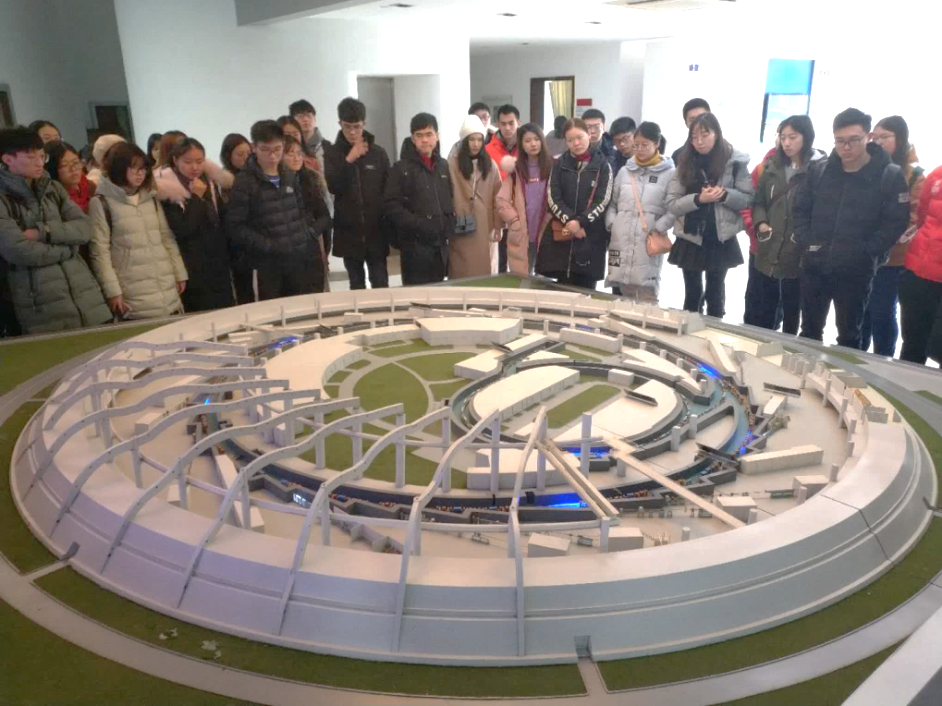 1月22日下午,大学生们报到刚结束,寒假创新实践活动便拉开了序幕。活动第一站:参观国之重器——上海同步辐射光源,感受中国的光源梦。在上海光源报告厅内,汪蕾老师用通俗易懂的语言向大学生们解释了什么是上海光源,介绍了它的结构特点、工作原理以及在各个学科领域的应用。随后,在光源线站科研人员的带领下,大学生们进入上海光源实验大厅和线站进行实地参观学习,见到了检测辐射的仪器、加速装置模型和磁铁实物模型等科研装置,并详细分析了整台仪器运转的过程。如此宏伟浩大的科学装置令大学生们一路叹为观止,更激发了他们内心对于科研的热情。