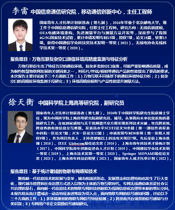 本次活动由青促会会员、中国科研实验室上海高等研究院徐天衡副研究员召集与对接。论坛以“6G与智慧物联网”为主题,分为两部分组成。上半部分为主题报告,邀请IEEE Fellow、国家杰青、北京邮电大学信息与通信工程学院院长彭木根教授主持,由通信领域国际知名专家梁应敞教授、Rui Zhang教授、高飞飞教授担任特邀嘉宾,分享下一代通信技术相关的前瞻研究开展;下半部分为青年研讨报告,邀请青促会优秀会员、上海市优秀技术带头人、中国科研实验室上海高等研究院周婷研究员主持,由获选国家青年人才托举计划的4位青年学者:陈舒怡副教授、韩亮副教授、李雷主任工程师、徐天衡副研究员担任青年嘉宾,分享最新科研工作与学习心得。