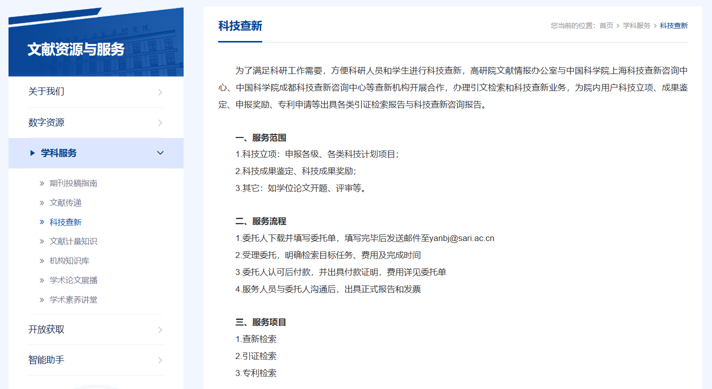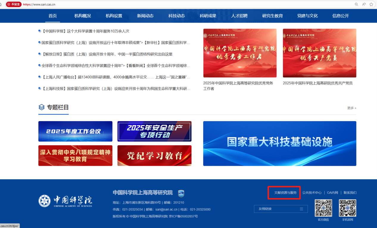 方法二:访问http://library.sari.ac.cn/进入“文献资源与服务”信息服务系统。